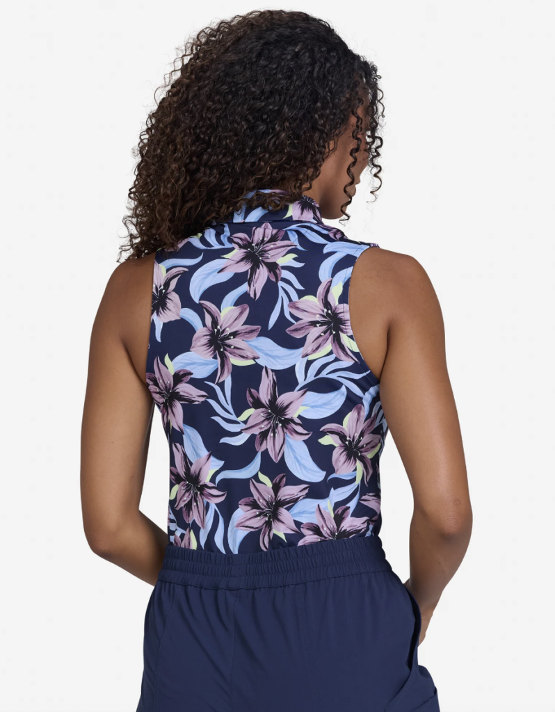 The Violet Women’s Sleeveless Polo by Bad Birdie is the original printed polo that helped define the brand, bringing fresh energy to the traditional game of golf. It combines style with functionality, offering every performance feature a golfer needs.