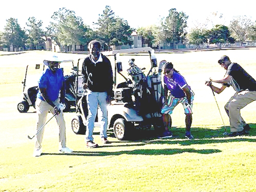 October 22, 2019—East Palo Alto T-Ball Pitching Machine struck another home run, this time it was on the golf course during their 15th Annual Golf Classic. The fundraising event attracted friends and fans for a pristine, 7:30 a.m. morning tee-off on Saturday, October 19 at The Club at Sunrise, 5483 Clubhouse Drive, Las Vegas, NV. In attendance were sports celebrities Eddie Hart, 1972 Olympian, gold medal track & field sprinter, Nate Oliver, 7-year major league career Los Angeles Dodgers, Curt Ford, Former Saint Louis Cardinals and Renaldo Brown, Olympic High Jumper., along with Charlie Weaver, and others.