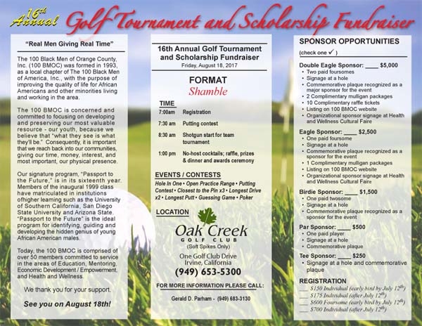 The 100 Black Men of Orange County, Inc. (100 BMOC) was formed in 1993, as a local chapter of The 100 Black Men of America, Inc., with the purpose of improving the quality of life for African Americans and other minorities living and working in the area.