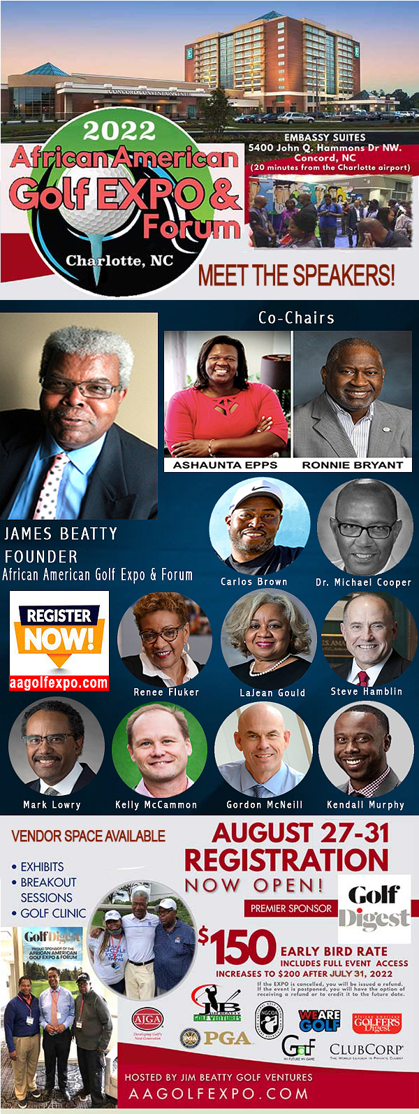 Another incredible business networking and golf extravaganza awaits you at the 2nd annual African American Golf Expo & Forum. The 2021 EXPO had a $700,000 ECONOMIC IMPACT and over 400 people attended in 2021!