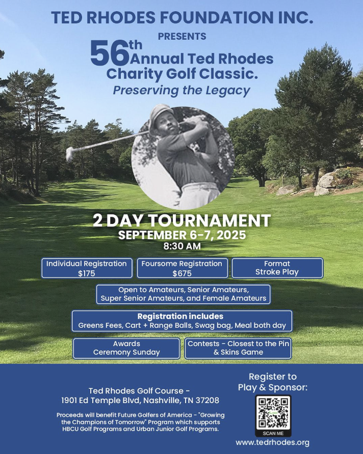 Join us for a weekend of golf, legacy, and impact at the 56th Annual Ted Rhodes Charity Golf Classic — a celebrated tradition honoring the life and legacy of golf pioneer and golf trailblazer Ted Rhodes.