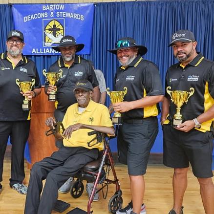Mr. Herbert Dixon surrounded by the winning team in 2025 during the annual tournament that honors him.
