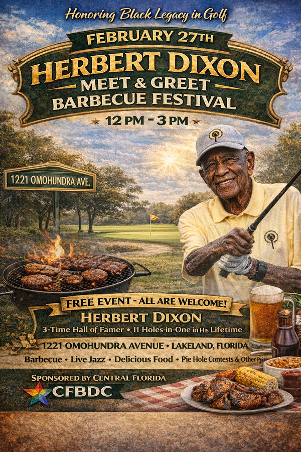 In celebration of Black History Month and the enduring legacy of African Americans in golf, the community is invited to attend the Herbert Dixon Meet & Greet Barbecue Festival on Thursday, February 27, from 12:00 p.m. to 3:00 p.m., in Lakeland, Florida. The free event will take place at 1221 Omohundra Avenue and is open to all.