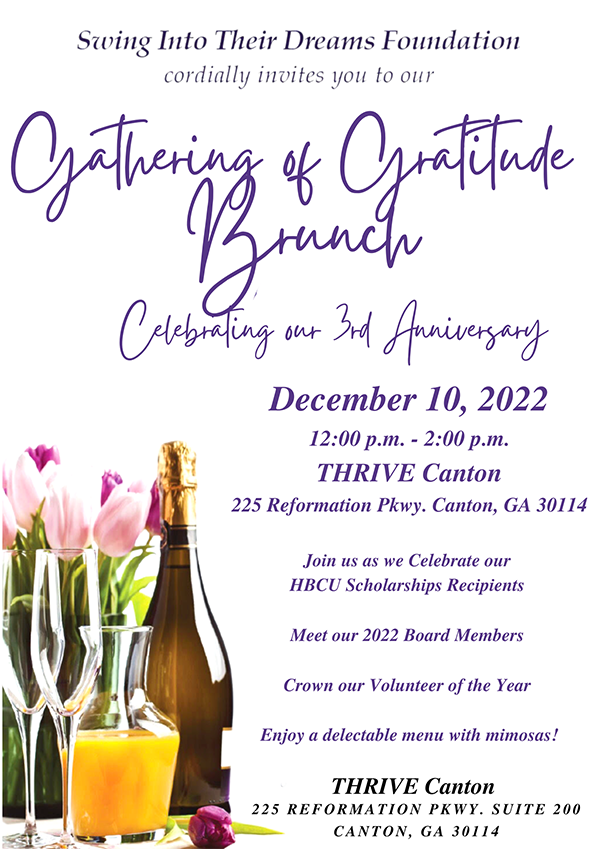 Gathering of Gratitude Brunch Hosted by Swing into Their Dreams Foundation by AAGD Staff December 10, 2022 written by AAGD Staff December 10, 2022 Date/Time Date(s) - 12/10/202212:00 pm - 2:00 pm Location THRIVE Canton LOCATION: THRIVE Canton 0 comment 0 FacebookTwitterPinterestEmail AAGD Staff previous post Golfing With A Purpose hosted by S.I.S.T.A.S. Empowering Sisters next post Black Golf Alliance Winter Getaway