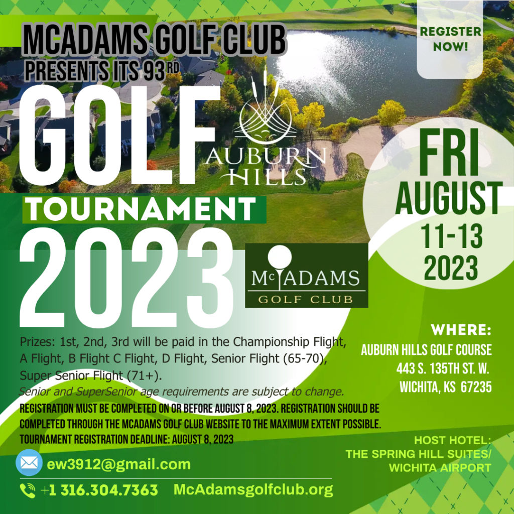 Note: Registration and host hotel bookings will be available online through our website: McAdamsgolfclub.org
