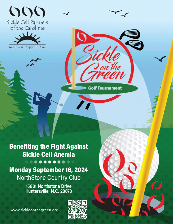 “Sickle on the Green” will be held on Monday, September 16, 2024. This charity golf tournament is designed to build awareness about Sickle Cell Disease, to engage in a day of fun and camaraderie with our friends and supporters in the community, and to raise funds for the non-profit, Sickle Cell Partners of the Carolinas.