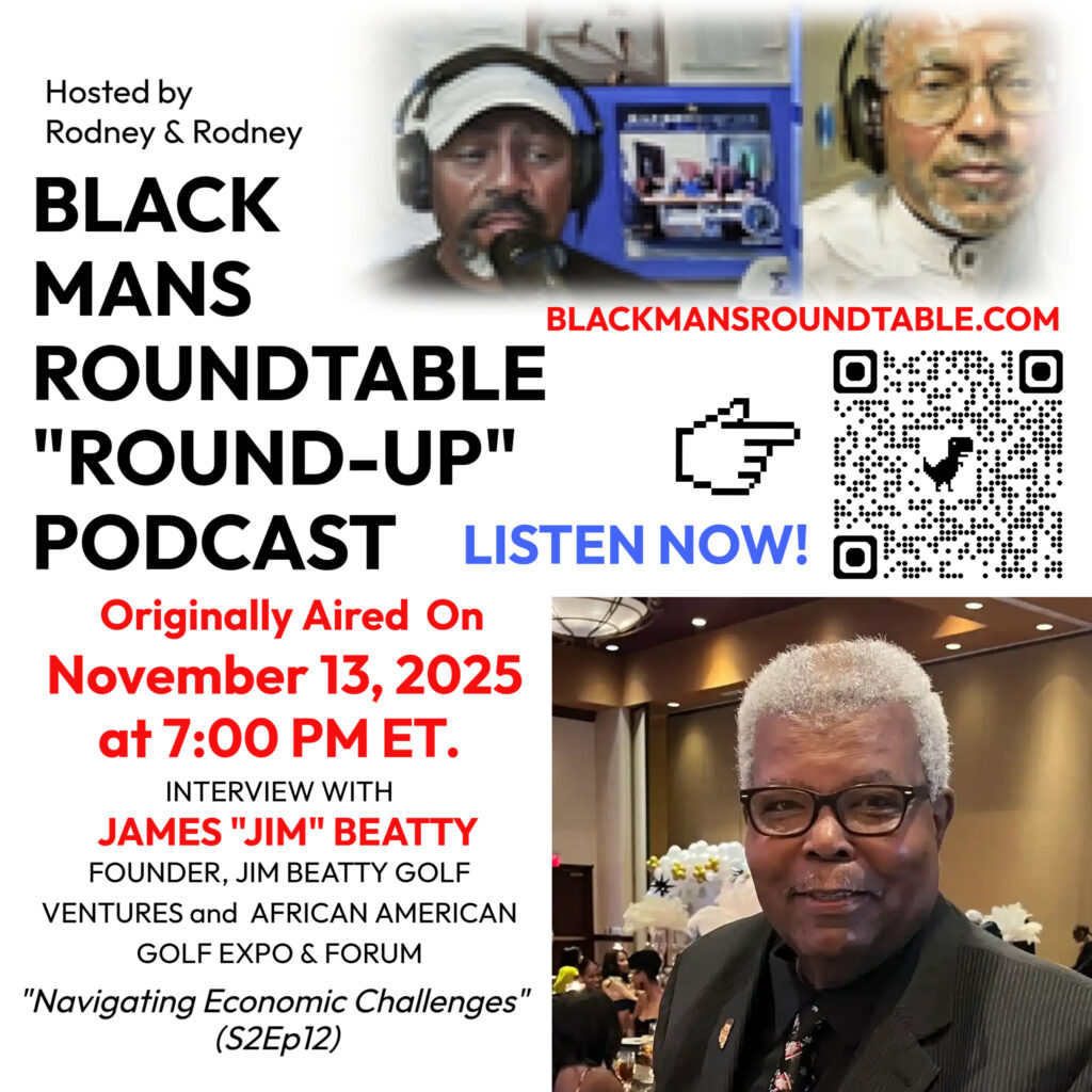 The Black Man’s Roundtable “Round-Up” podcast hosted a dynamic and thought-provoking conversation on diversity, equity, and inclusion (DEI) within the $100-billion-plus golf industry on November 13, 2025, at 7:00 PM ET. Presented by Rodney & Rodney, that month’s episode marked Part II of an ongoing discussion examining opportunities and challenges surrounding DEI across golf’s professional, recreational, and business sectors.