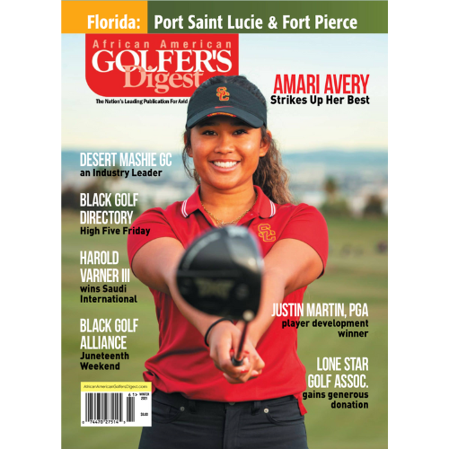 (Volume 18, No. 4) Cover: Amari Avery, 4-Time All American Rolex Winner along with news features news and coverage of Desert Mashie Golf Club an Industry Leader, Black Golf Directory High Five Friday, Florida: Port Saint Lucie and Fort Pierce, Harold Varner III Wins Saudi International, Black Golf Alliance Juneteenth Weekend, Justin Martin, PGA, a Player Development Winner, Lone Star Golf Association Gains Generous Donation. (24 pages)