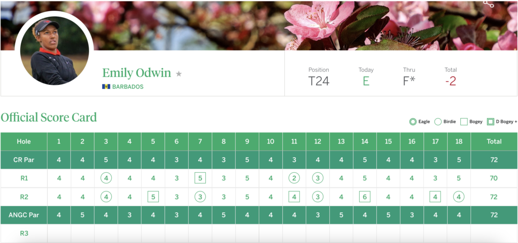 Odwin, age 18, entered the championship among a global field representing more than 20 countries, with many players ranked inside the top tiers of the World Amateur Golf Ranking. Selection into the Augusta National Women’s Amateur (ANWA) itself signals elite status, as invitations are extended based on ranking, amateur wins, and high-level performance across international competition. The entry makes history makes her the first player to represent Barbados and her transition to NCAA golf has further elevated her exposure and competitive experience.