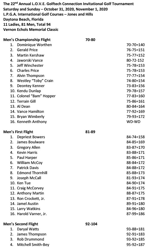 Home Leaderboard The 22nd Annual L.O.V.E. Golftech Connection Invitational Golf Tournament