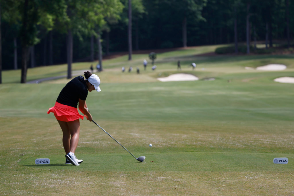 BIRMINGHAM, AL – MAY 06: A participant hits her tee shot during the first round of the Junior PGA WORKS Collegiate Championship at Shoal Creek Club on Saturday, May 6, 2023 in Birmingham, Alabama. (Photo by Butch Dill/PGA of America)