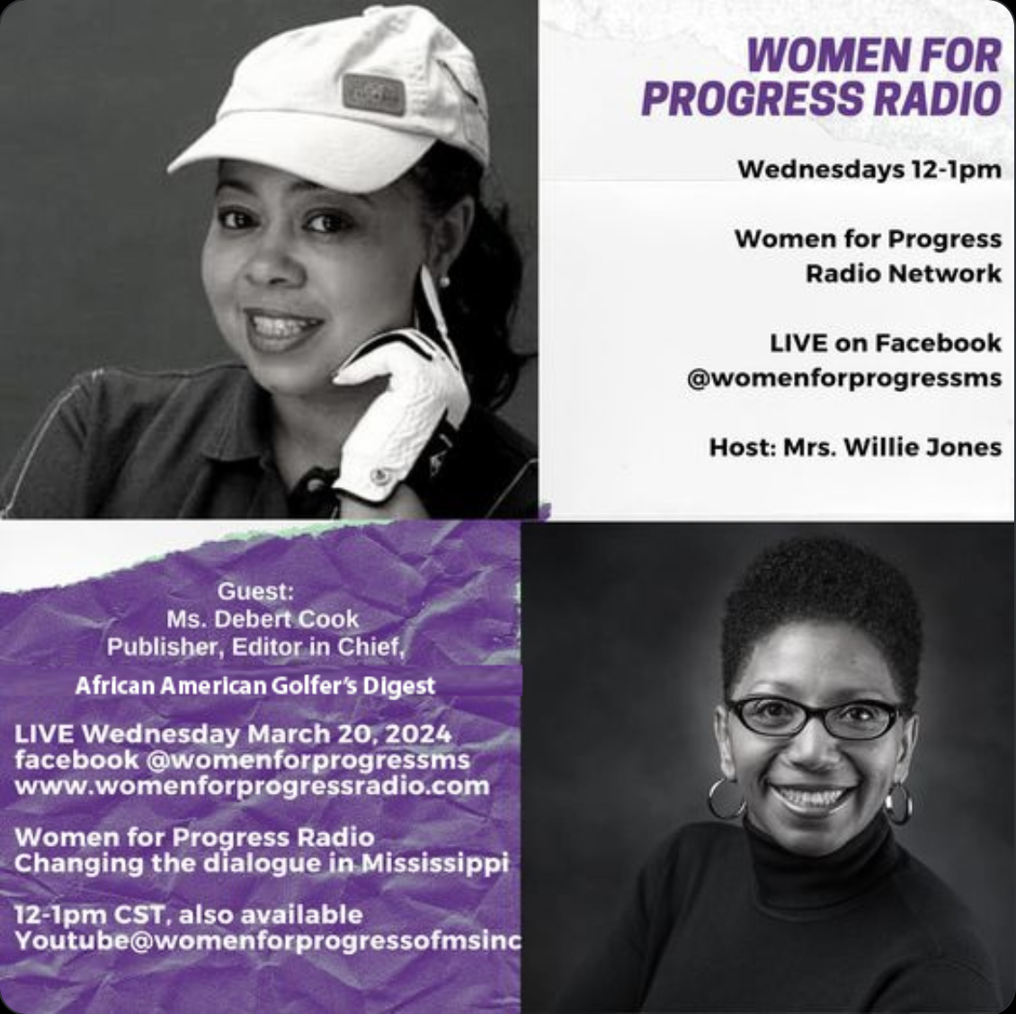 African American Golfer’s Digest Publisher Debert Cook recently joined Women of Progress Radio for an insightful interview focusing on his journey, the magazine’s mission, and the evolving landscape of Black golf. On air, Cook discussed how he built the Digest from a vision into a respected voice in the golf media world—one that highlights stories and contributions often overlooked elsewhere.